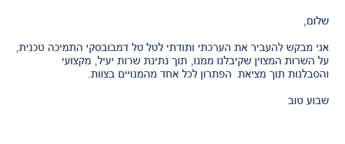 אני מבקש להעביר את הערכתי ותודתי לטל טל דמבובסקי התמיכה טכנית,
