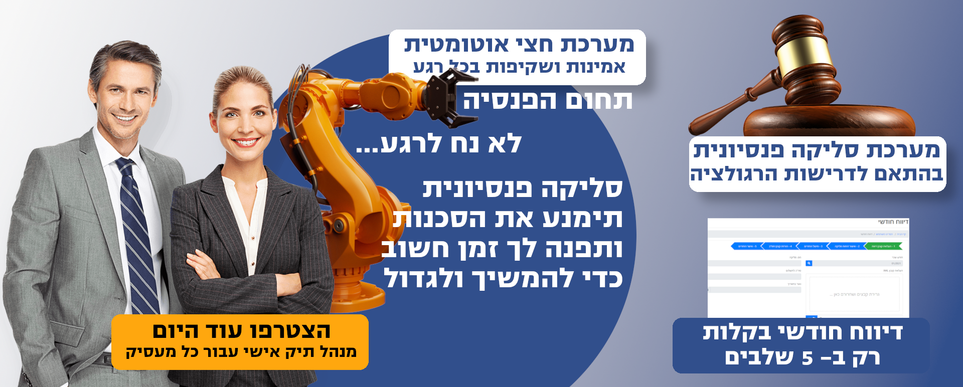 סינאל פנסיה חלוצה בחדשנות מספקת למעסיקים, סוכני ביטוח ומנהלי הסדרים פנסיוניים פתרון מקיף, מקצה לקצה, לסליקת כספי ההפקדות לחסכון הפנסיוני באופן ממוכן, מאובטח ותואם את דרישות הרגולציה, לכלל הגופים המוסדיים במשק.