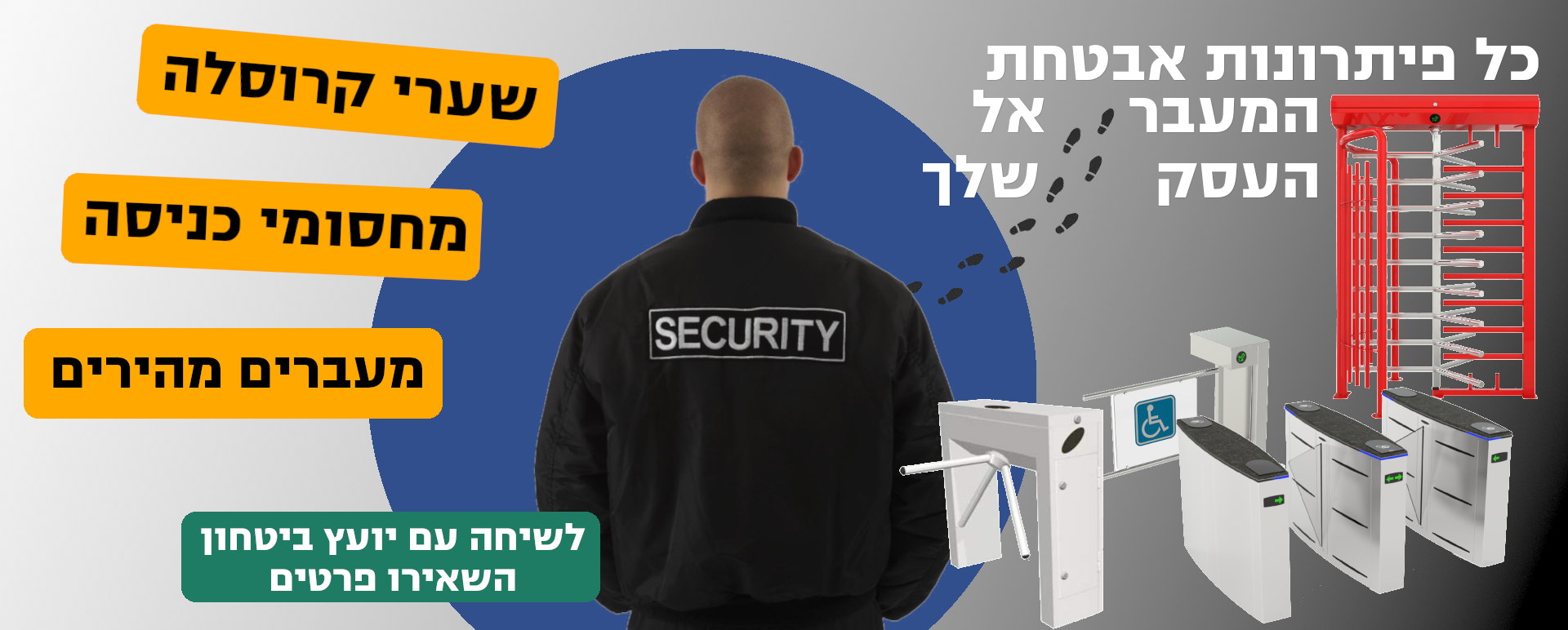 סינאל סקיוריטי (חטיבת ביטחון) מספקת קרוסלות, סבסבות ומעברים מהירים כחלק מפיתרון אבטחה מקיף לעסק שלכם ומאפשרות לכם לפקח ולשלוט על האזורים עליהם אתם רוצים להגן ולמנוע כניסה של מי שאינם מורשים. מערכות אלו מנטרות כניסות ויציאות של הן של עובדים והן של מבקרים ואורחים.
