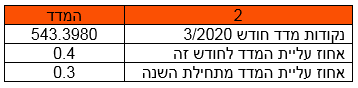 להלן נתוני מדד חודש מרץ 2020 לביצוע עיבוד שכר לחודש אפריל 2020