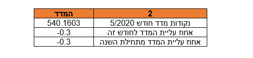 להלן נתוני מדד חודש מאי 2020 לביצוע עיבוד שכר לחודש יוני 2020