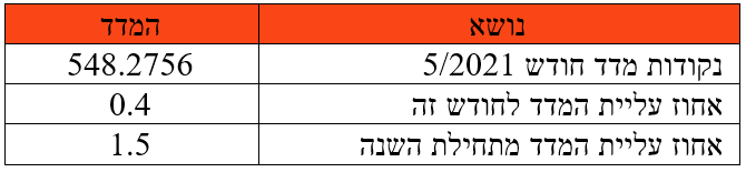 להלן נתוני מדד חודש אפריל 2021 לביצוע עיבוד שכר לחודש מאי 2021: