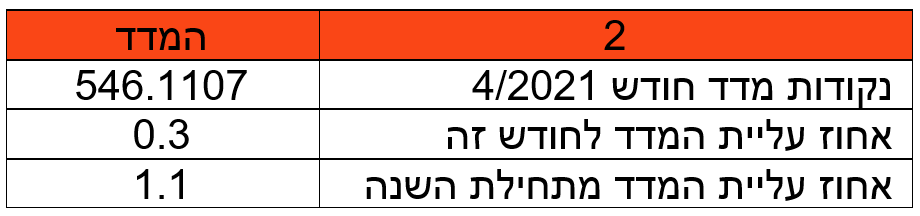 להלן נתוני מדד חודש אפריל 2021 לביצוע עיבוד שכר לחודש מאי 2021: