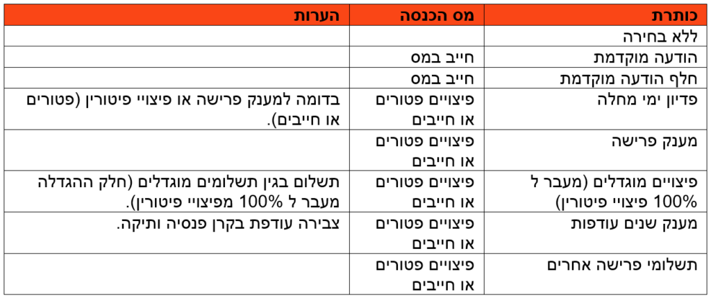 כותרת: “סוג תשלום בפרישה / עזיבה”.