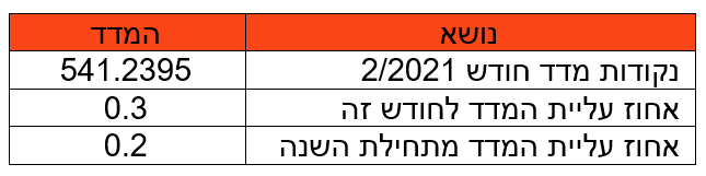 להלן נתוני מדד חודש פברואר 2021 לביצוע עיבוד שכר לחודש מרץ 2021:
