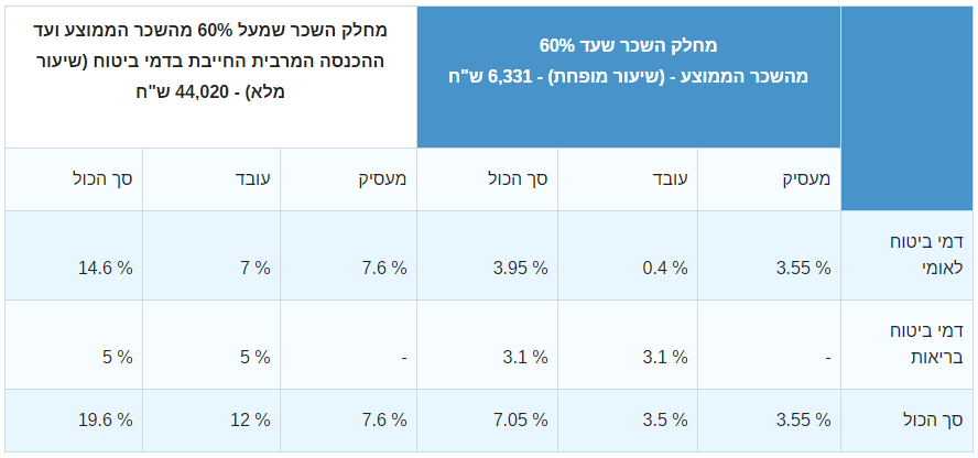60% השכר הממוצע לעניין דמי ביטוח בשיעור המופחת הינו: 6,164 ש”ח