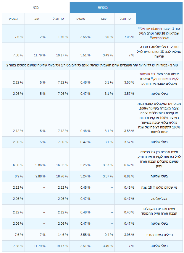 שיעורי ההפרשות עבור עובד עצמאי למידע נוסף על